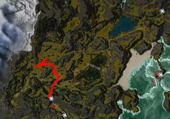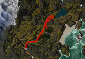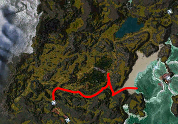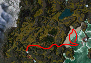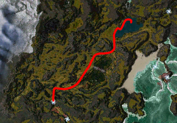 - Run to the bridge on the lower route, run passed the Naga group, and the Wallow 3 group and run to the lake.